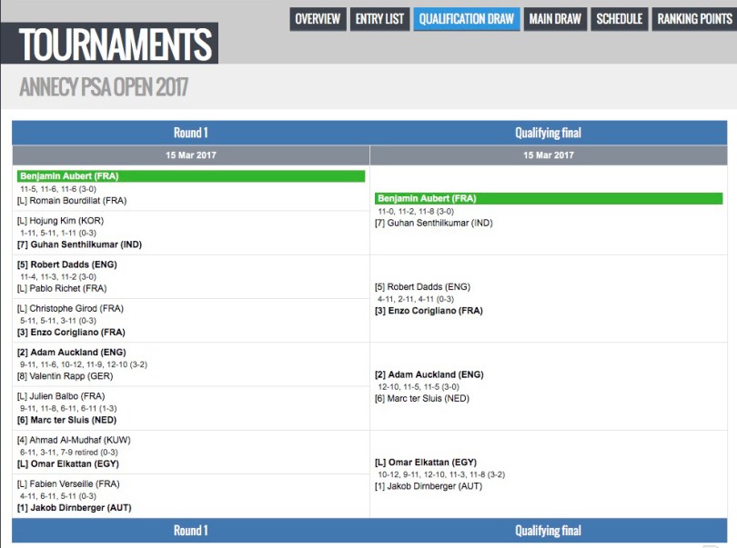 AUBERT Benjamin squash player 13 Français #50 World Ranking PSA meilleur classement