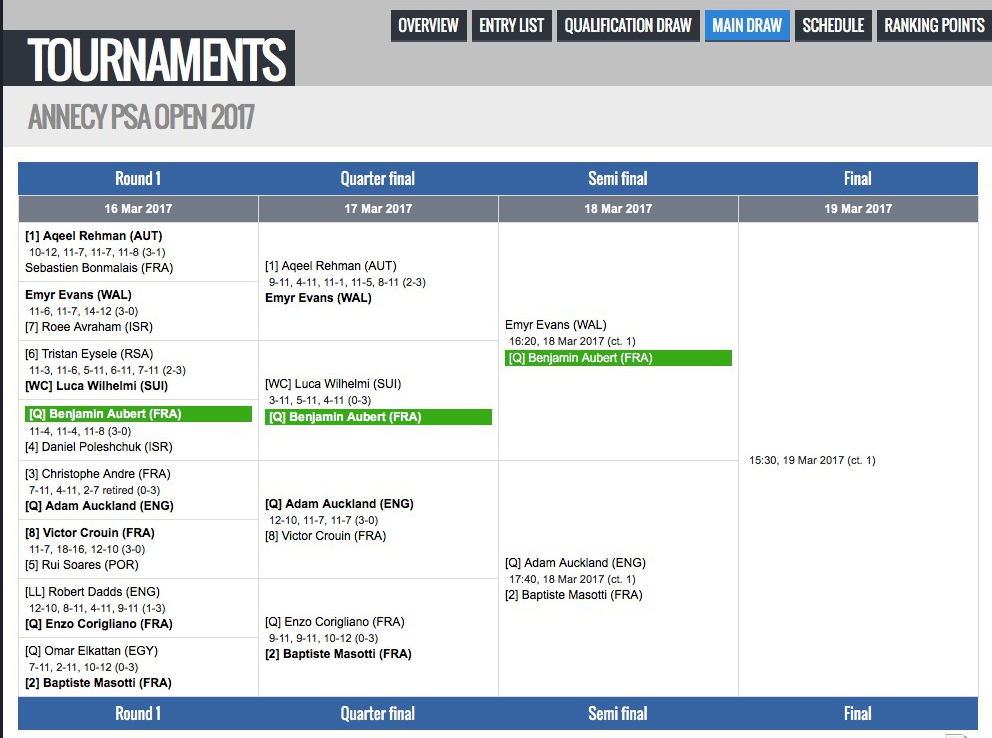 AUBERT Benjamin squash player 13 Français #50 World Ranking PSA meilleur classement
