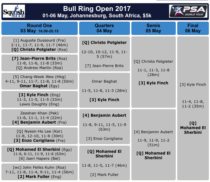 Mohamed El SHERBINI bat Kyle FINCH 3/0 11/4 11/8 11/2