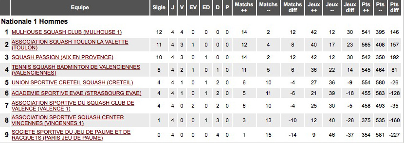 Calendrier (très) chargé oblige (huit épreuves sur le circuit PSA la semaine dernière et des rencontres par équipes en Allemagne), de nombreux joueurs manquaient à l’appel dans les différentes équipes. Par exemple Paul Coll (Aix) et Ali Farag (Toulon), qui disputaient un tournoi 100 000 $ en Angleterre. Mais pas Grégory Gaultier, que l’on n’avait pas revu en compétition depuis sa défaite en finale du championnat d’Europe, à cause d’une blessure au pied. À quelques semaines du championnat du monde par équipes, le numéro 1 mondial a rassuré les supporters des Bleus, en s’imposant sans forcer contre Quint Mandil (Jeu de Paume) et David Baillargeon (Strasbourg). Même sans sa recrue Paul Coll, les Aixois ont facilement disposé des Parisiens et des Alsaciens et prennent la tête de la N1. « L’équipe s’appelle désormais Squash Passion La Maison Nordique, » précise le capitaine Jean-Michel Arcucci. « Avec le soutien de cette société parisienne, nous aurons toutes nos chances cette saison. »