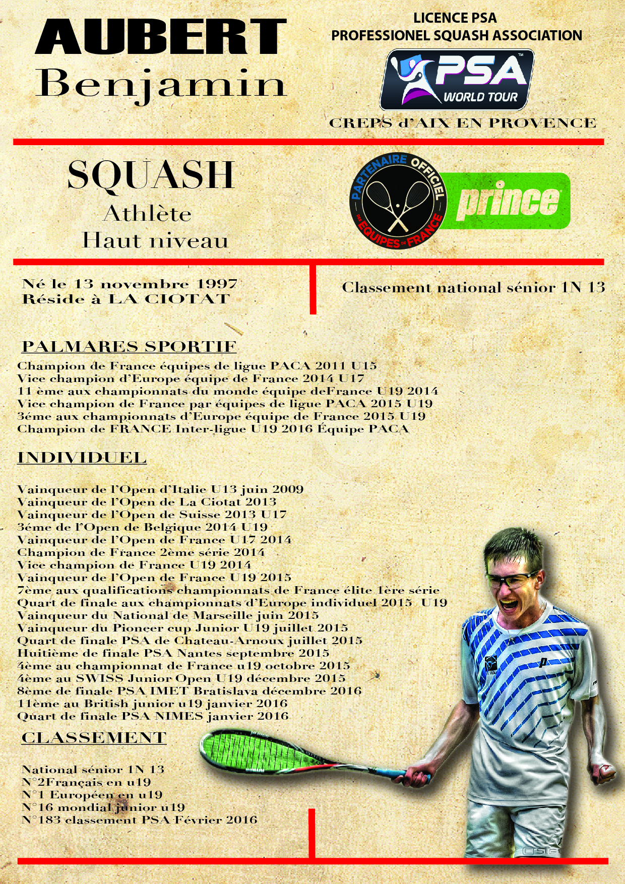 AUBERT Benjamin squash player 13 Français #50 World Ranking PSA meilleur classement
