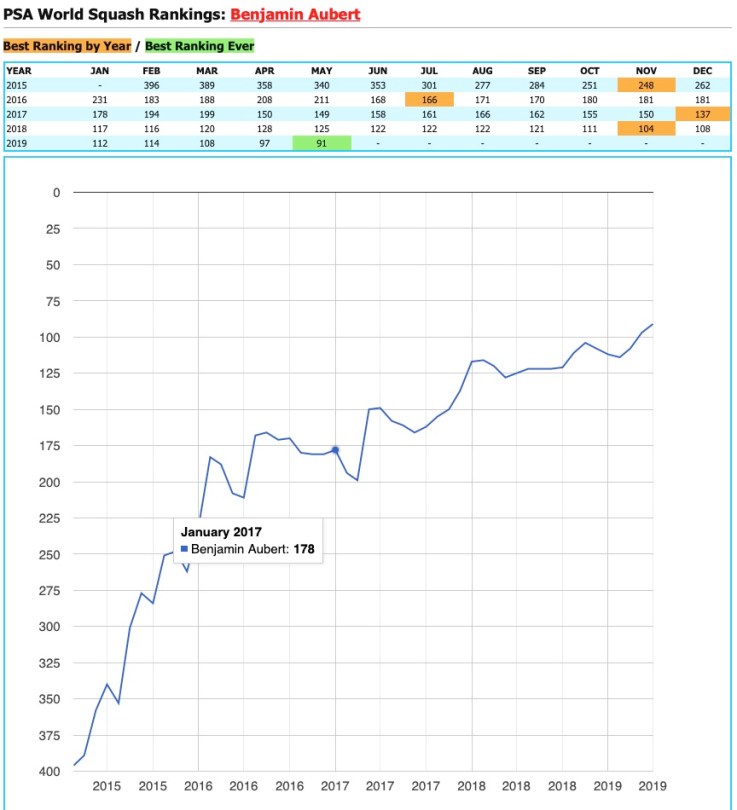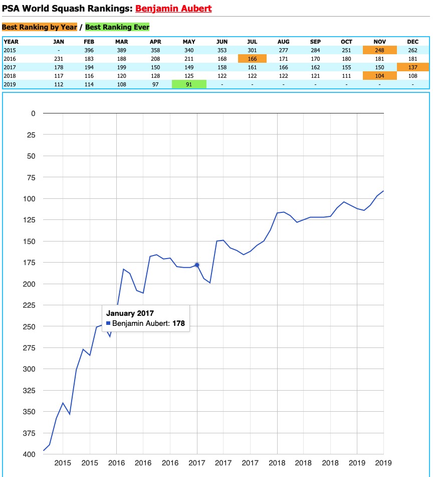 AUBERT Benjamin squash player 13 Français #50 World Ranking PSA meilleur classement
