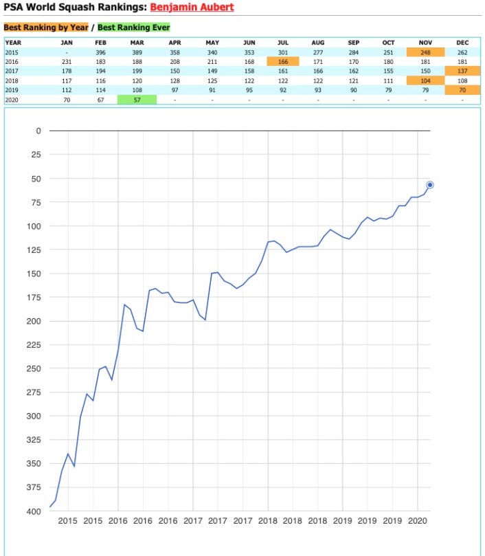 AUBERT Benjamin squash player 13 Français #50 World Ranking PSA meilleur classement