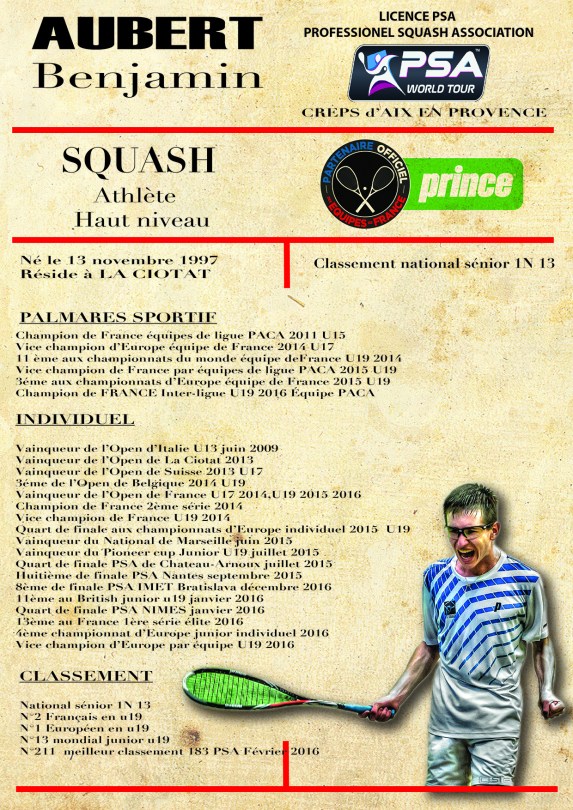AUBERT Benjamin squash player 13 Français #50 World Ranking PSA meilleur classement