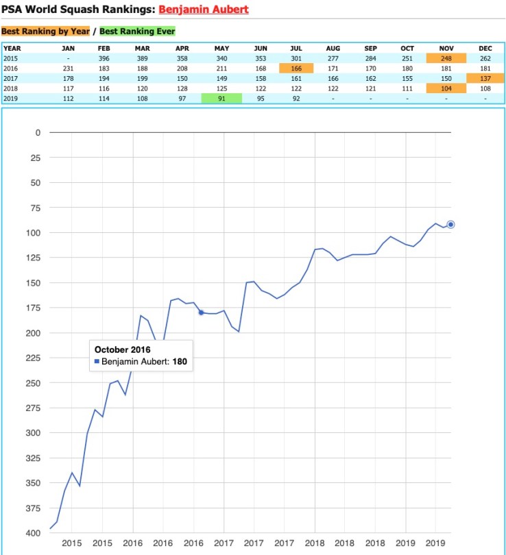 AUBERT Benjamin squash player 13 Français #50 World Ranking PSA meilleur classement