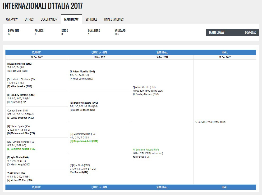 AUBERT Benjamin squash player 13 Français #50 World Ranking PSA meilleur classement