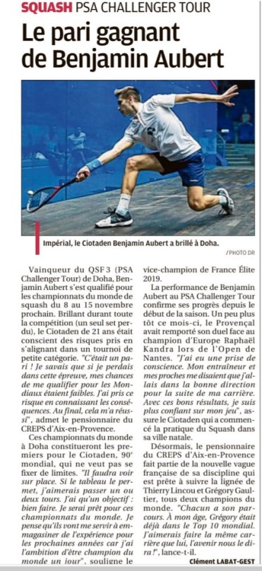 AUBERT Benjamin squash player 13 Français #50 World Ranking PSA meilleur classement