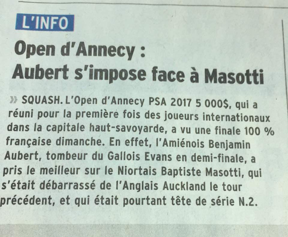 AUBERT Benjamin squash player 13 Français #50 World Ranking PSA meilleur classement